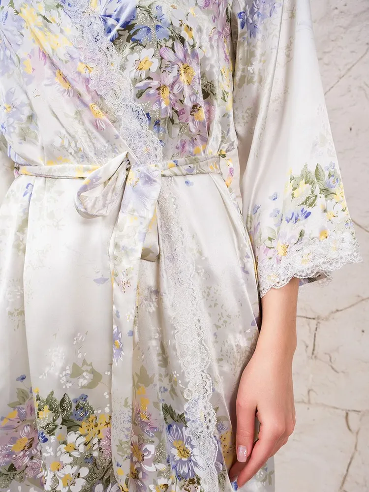 Тип Халат короткий Цвет Молочный Модель Халат с рукавом 3/4 Материал Смесовый шёлк