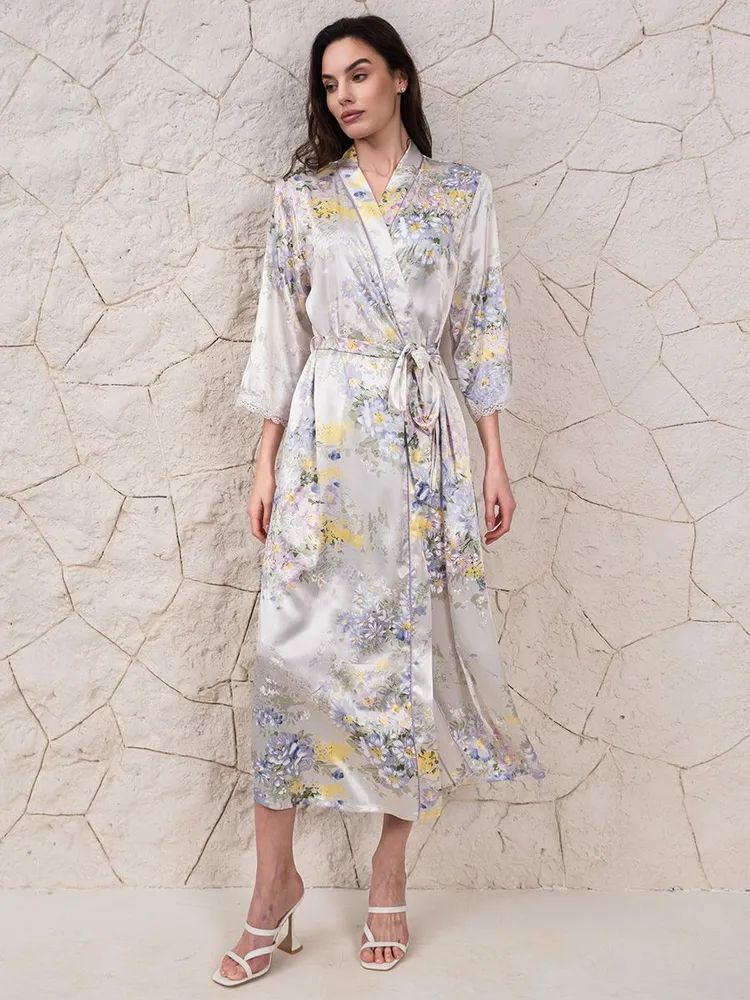 Шёлковый халат женский длиною макси Lilianna Лилианна 5999 Mia-Amore имеется в размерах: S/M. L/XL. XXL/3XL. 4/5XL.