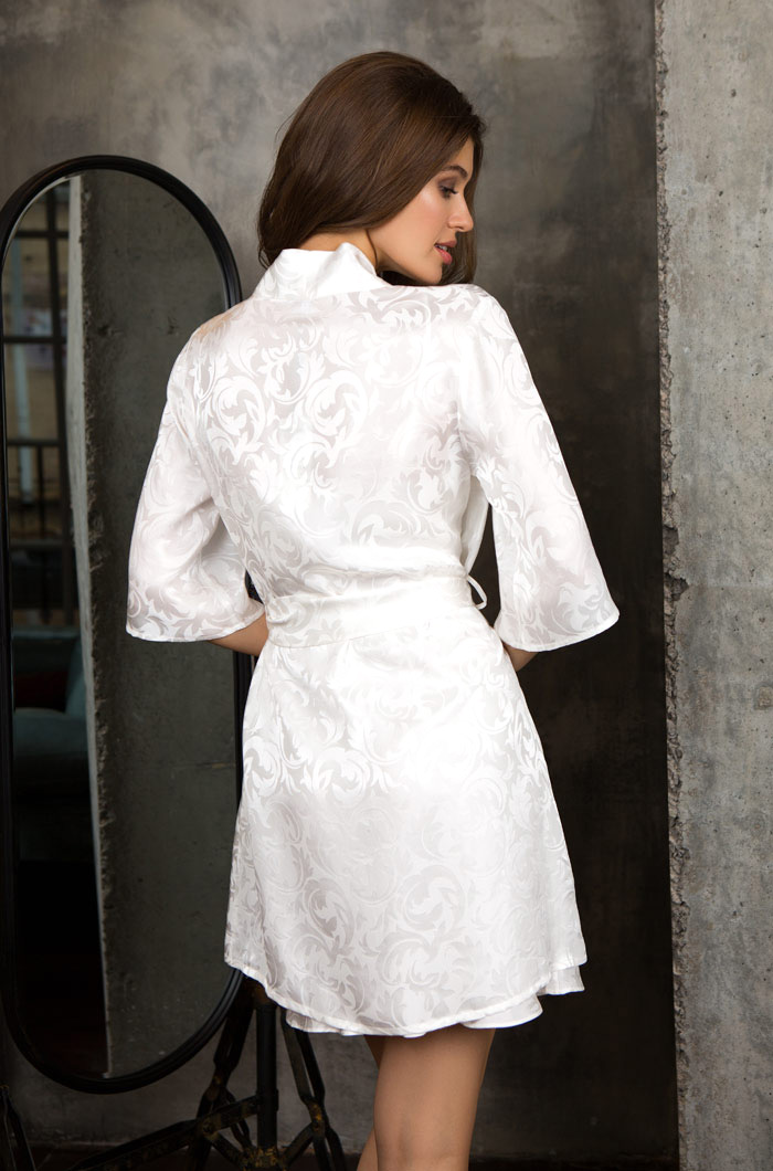 Тип Халат короткий Цвет Белый Модель Халат с рукавом 3/4 Материал Натуральный шёлк