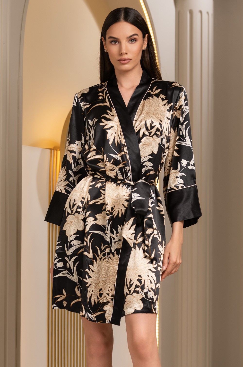 -Шёлковый халат короткий запашной Эльмира 4263 Mia-Amore