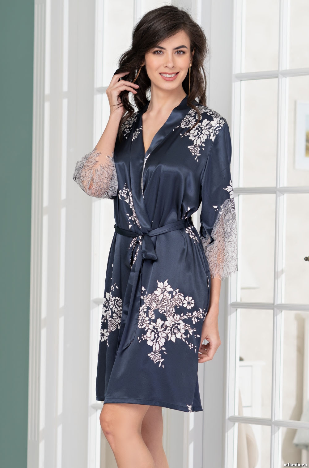 Тип Халат короткий Цвет Синий Модель Халат с рукавом 3/4 Материал Смесовый шёлк