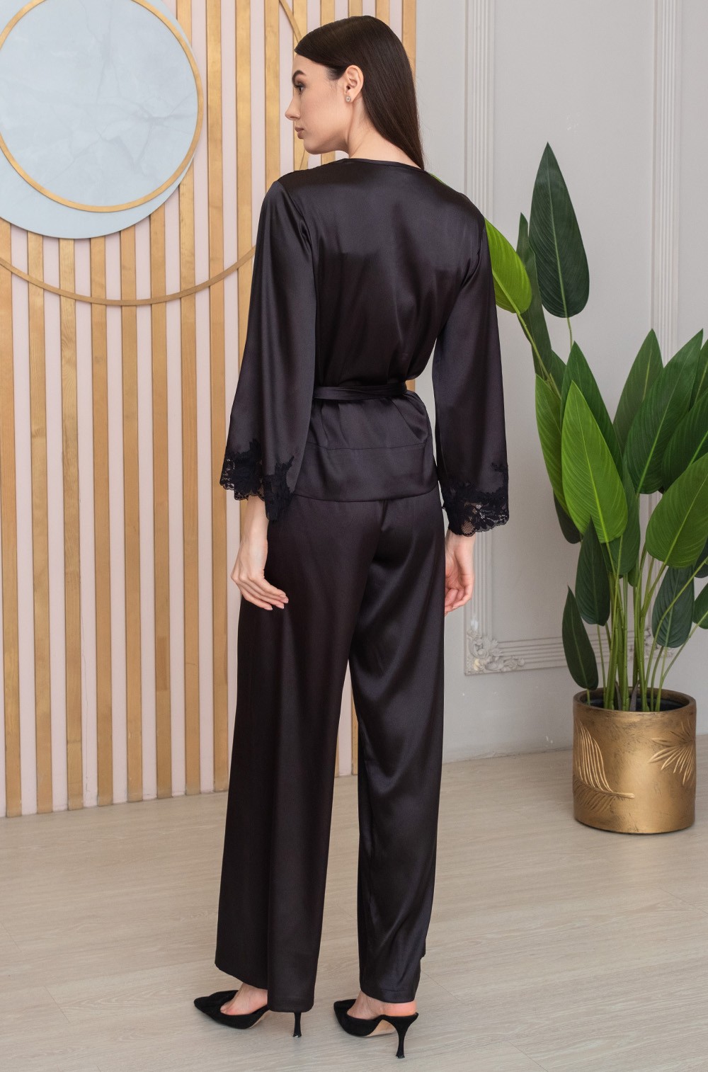 Роскошная шёлковая пижама чёрная 3 предмета Аделина 4176 Mia-Amore имеется в размерах: S.M.L.XL.2XL.