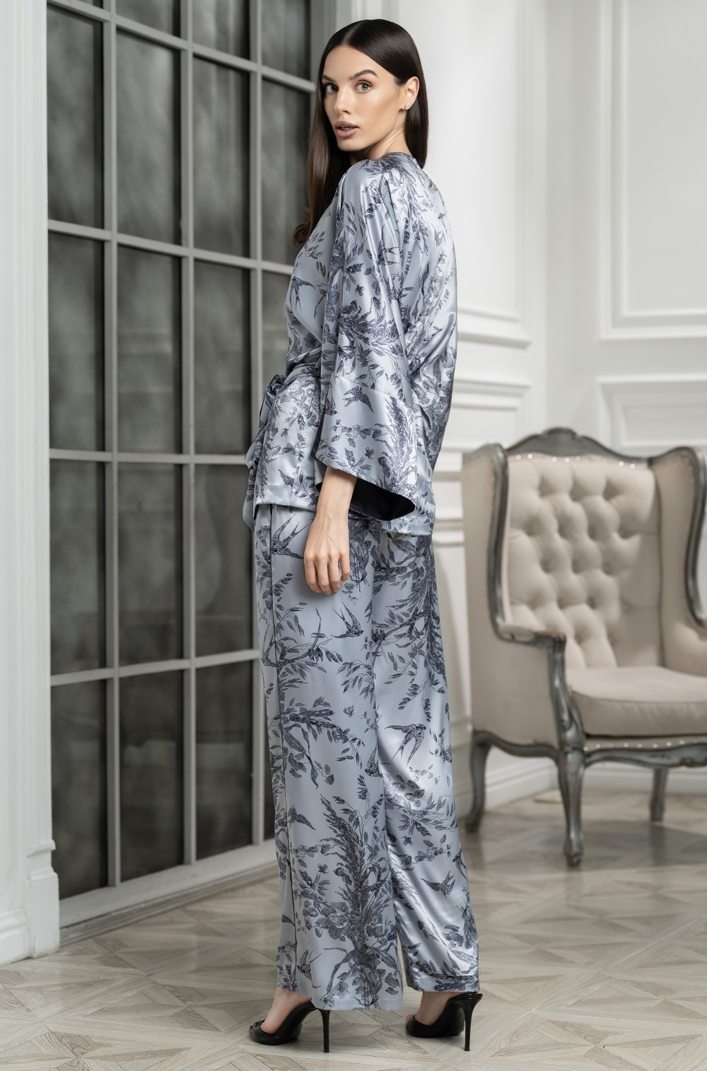 Тип Пижама с брюками Цвет Серый Модель Комплект жакет, топ, брюки Материал Смесовый шёлк