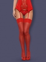 Чулки красный с широкой резинкой для ношения с поясом S 800 Obsessive имеются в размерах S/M. L/XL.