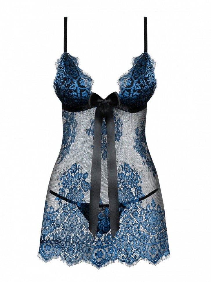 Чувственный нежный бэбидол YASSMYNE от европейского производителя Obsessive. Воздушный дизайн великолепно подчеркивает красоту ног и ягодиц. Регулируемые бретели гарантируют точную посадку по фигуре, затежка на спинке. Поролоновые чашки украшены кружевом - красиво подчеркивает грудь, под чашками атласная лента. Черные, гладкие стринги входят в комплект. Мерцающий мягкий материал.