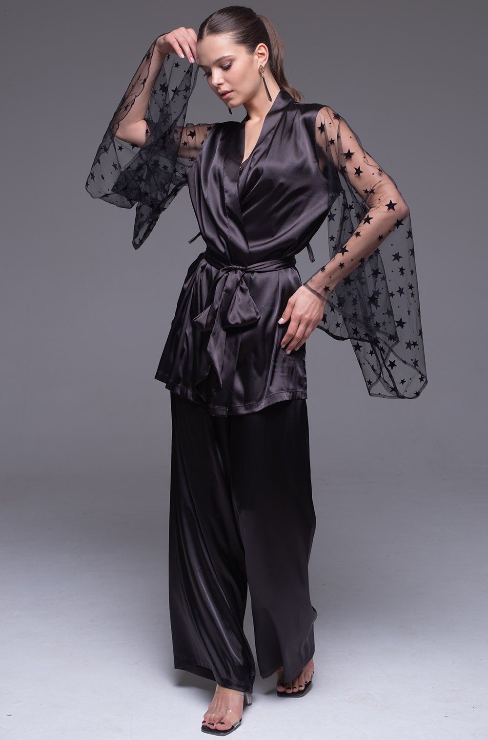 Шёлковый халат с эффектными рукавами Andromeda 4309 Mia-Amore