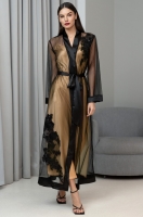• Роскошный длинный запашной халат Mia-Amore Jardin 4029 — это воплощение элегантности и роскоши. Он выполнен из чёрной мягкой сетки, которая придаёт ему особую утончённость и воздушность.
