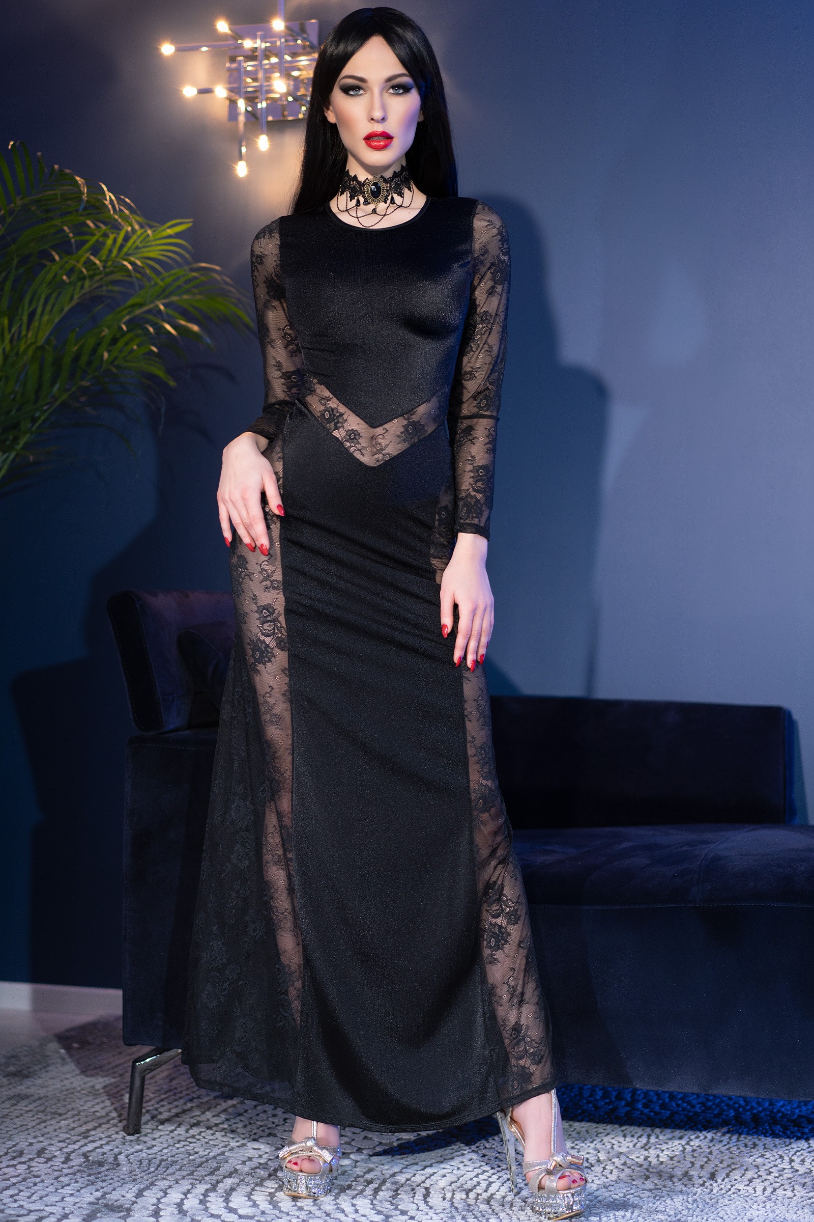 Сексуальное платье со стрингами длинное с кружевными вставками 4408 ChiliRose имеется в размерах: S. M. L. XL.