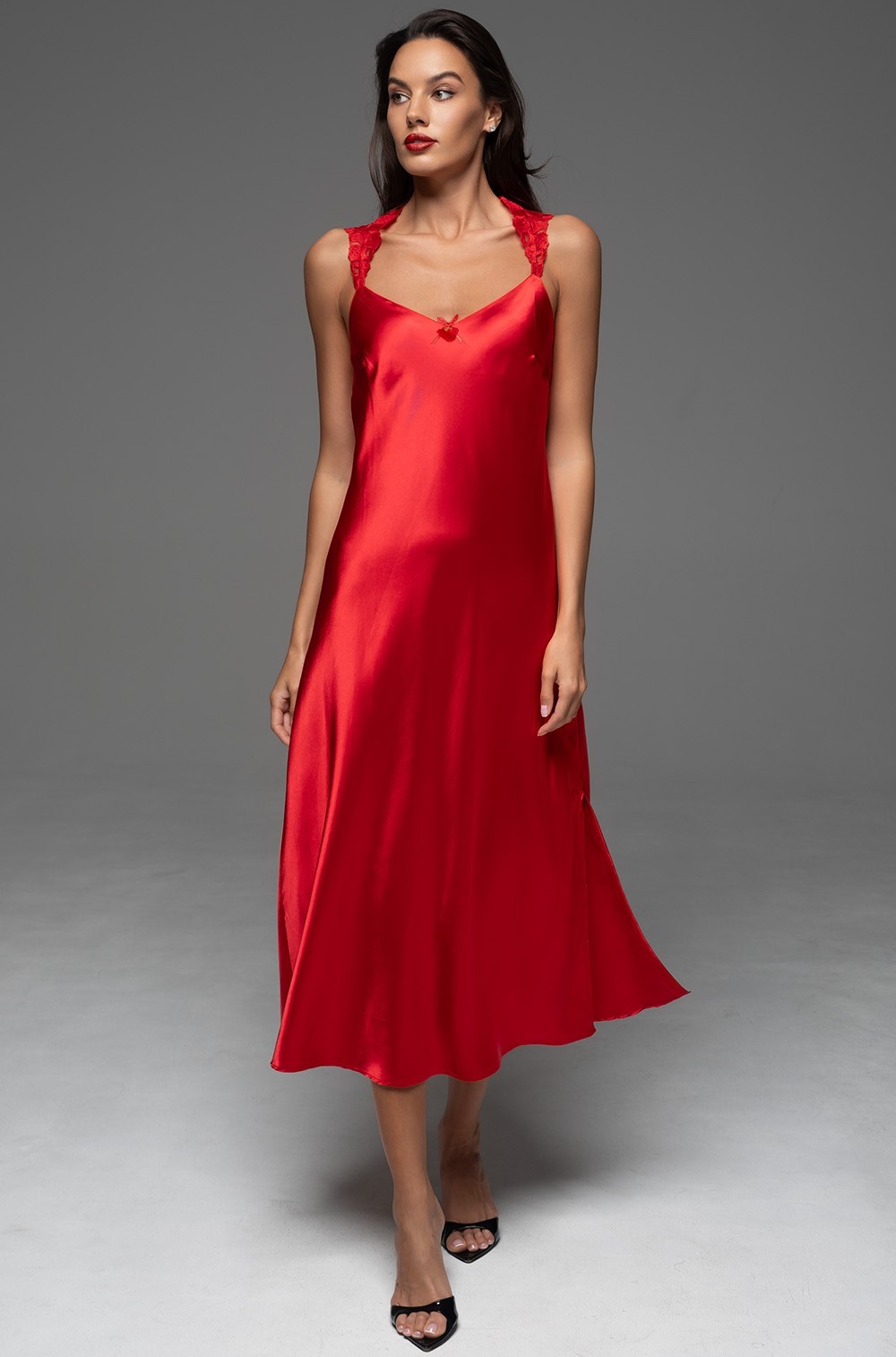 Изысканная шёлковая сорочка красная с кружевом Merlot 4740 Mia-Amore