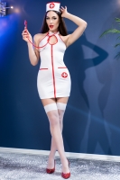 Костюм для ролевых игр, арт. 4430 Nurse set «Горячая и сексуальная медсестра». В состав комплекта входит: мини-платье, облегающее фигуру, спереди на молнии, стринги, ободок на голову, стетоскоп, белые чулочки.
