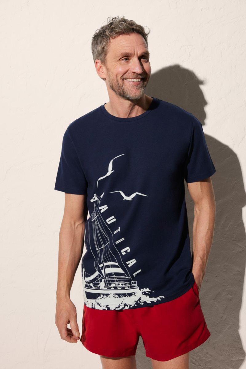Синяя мужская футболка с принтом хлопок 90504 Ysabel Mora Испания имеется в размерах: M. L. XL. XXL