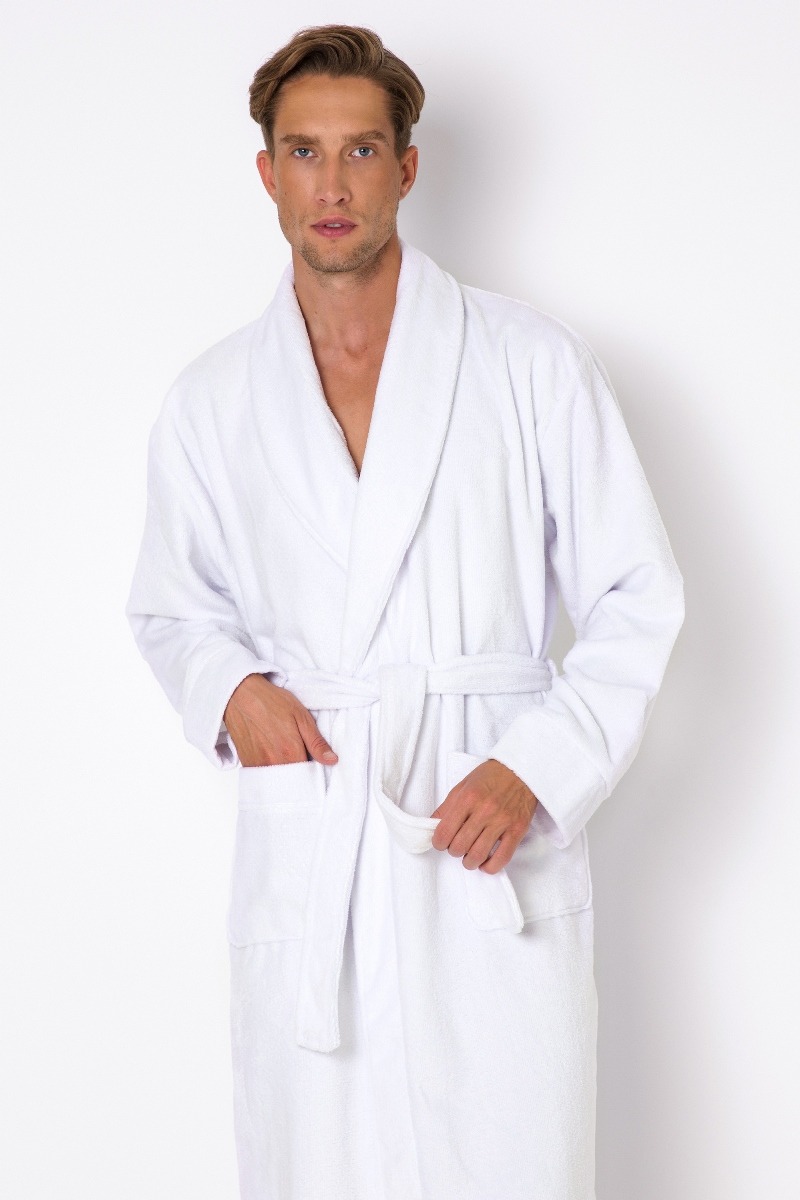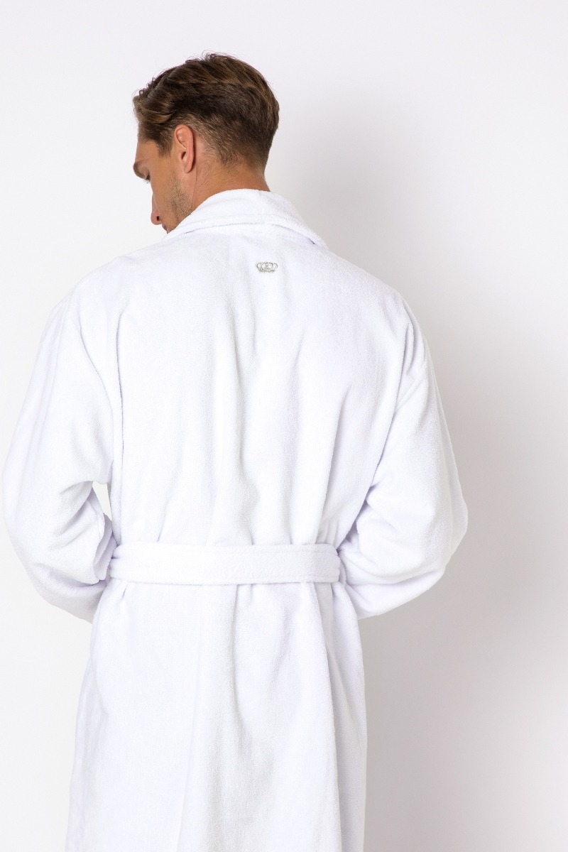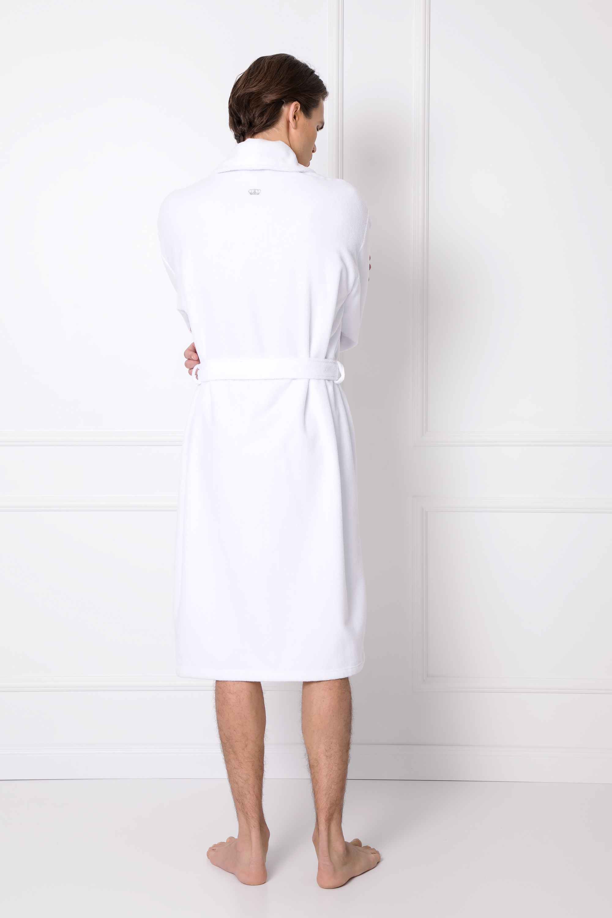 Мужской халат белый хлопковый для дома средней длины THEODOR Aruelle имеется в размерах 36 (S). 38 (M).40 (L).42(XL).44 (XXL).