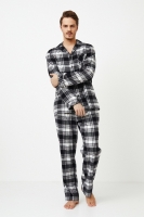 Эта пижама выполнена из мягкого хлопка и предлагает идеальное сочетание комфорта и очарования благодаря вневременному черно-белому клетчатому рисунку.