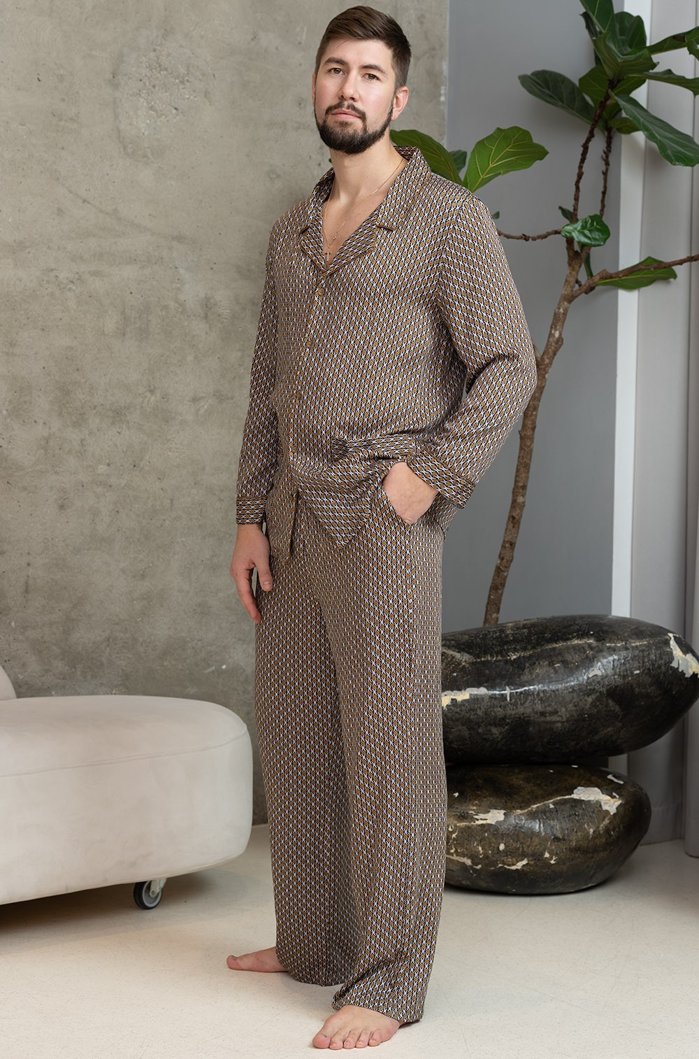 Тип Пижама с брюками Цвет Коричневый Модель Комплект жакет с брюками Материал Вискоза -