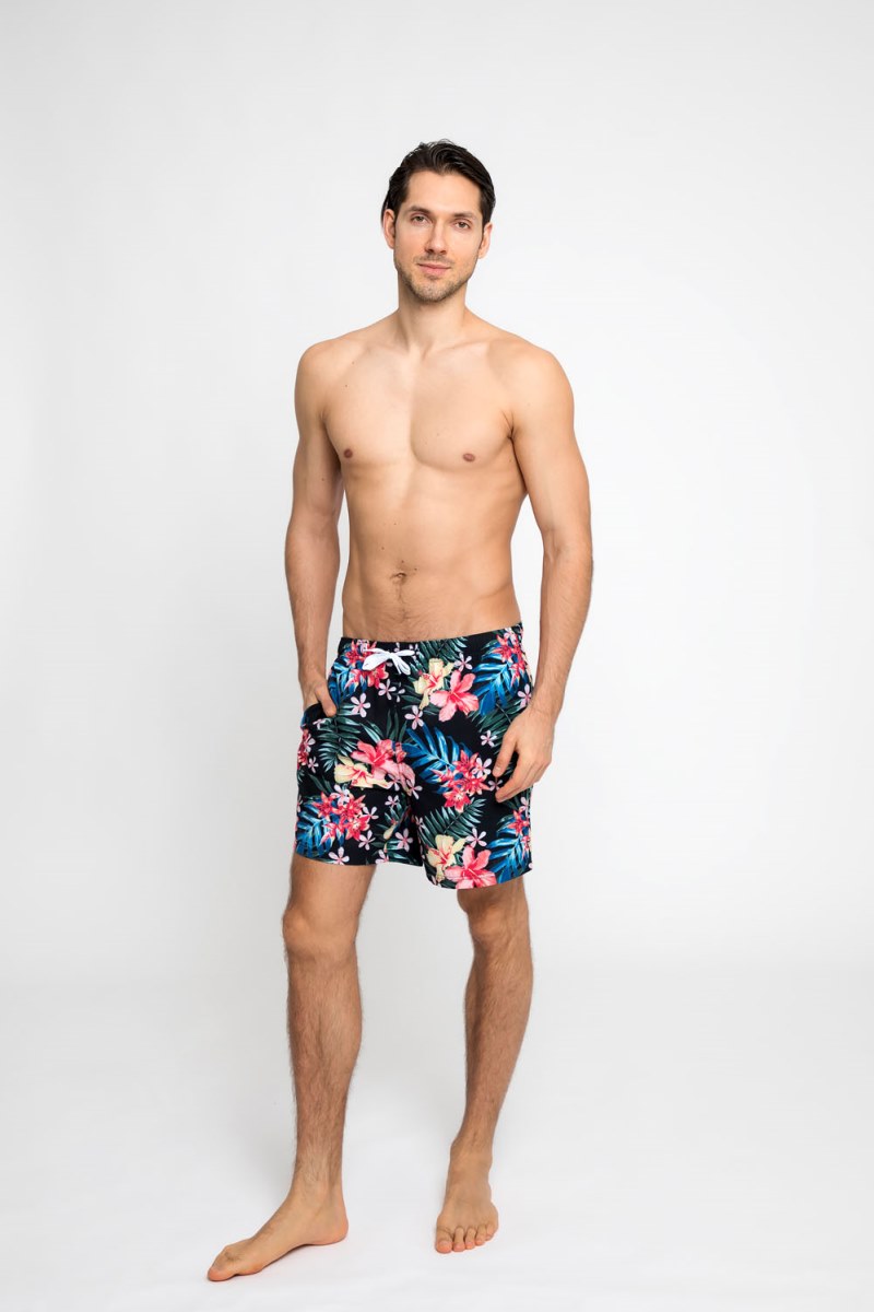 • Мужские купальные шорты MARK 002 от европейского производителя Leyeroo. Изделие на завязках, с боковыми и задним карманами, выполнено из легкой быстросохнущей ткани. Летний сочный принт в цветочном мотиве. Эластичный материал.