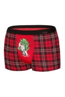 Мужские рождественские шорты-боксеры с забавным принтом на ластовице. Фон боксеров — рождественская клетка . Эти шорты-боксеры – интересное предложение уникального мужского нижнего белья для людей с чувством стиля и в то же время для тех, кто относится к себе на расстоянии. Удобные боксеры своими свойствами обязаны эластичному материалу и тщательной обработке. Плоские швы приятны для кожи, ненадавливающая отделка ног обеспечивает максимальный комфорт, а поддерживающий эластичный пояс отделан мягким материалом, не раздражающим кожу. Боксеры упакованы в эстетичную коробку.