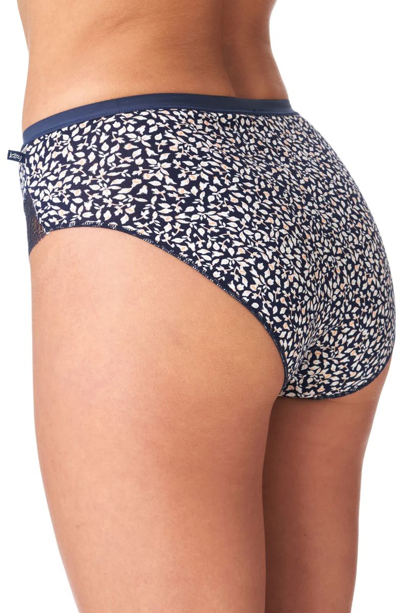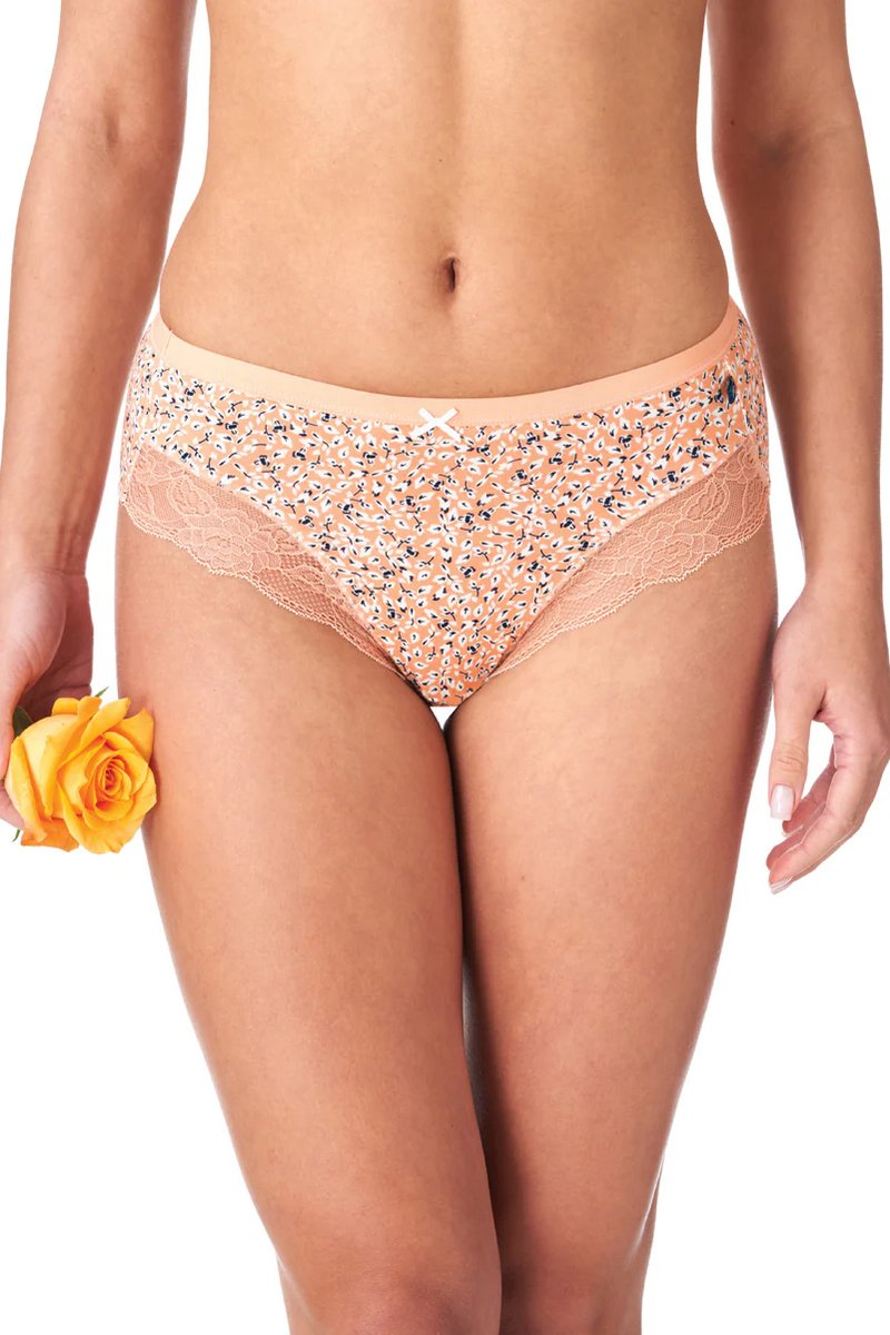 Трусики классического кроя "миди бикини", с высокой линией талии, покрывающей живот. Широкая удобная сторона (9 см для размера M) обрамляет бедра. Полная задняя часть трусиков удобно покрывает ягодицы. Модель отделана широким мягким кружевом. Удобный крой для любой женской фигуры, особенно рекомендуется женщинам с более полными формами.