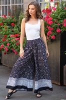 Принтованные брюки Mia-Amore свободного кроя с эффектом расклешенной юбки. С помощью широкого эластичного пояса можно регулировать посадку на талии.