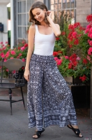 Принтованные брюки Mia-Amore свободного кроя с эффектом расклешенной юбки. С помощью широкого эластичного пояса можно регулировать посадку на талии.
