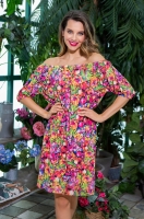 Туника домашняя женская Миа-Миа выполнена из эластичной принтованной сетки. Модель приталенного силуэта длиной выше колена. По талии и по плечам изделия кулиска на резинке. Рукав короткий.