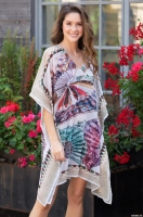 Туника Mia-Amore свободного кроя, выполнена из принтованного полотна. Горловина декорирована бисером и пайетками.