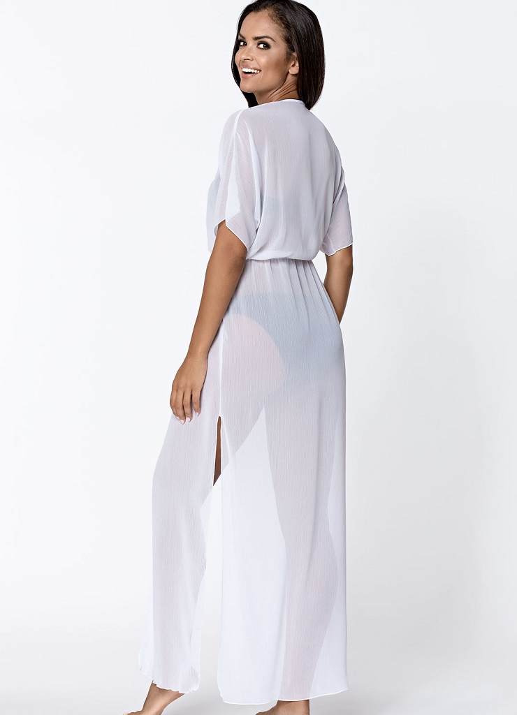 Легкий воздушный пляжный халат L6018/9 на поясе, с боковыми разрезами и укороченным рукавом.