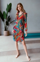 • Туника женская Barbara Барбара Миа-Миа выполнена из эластичной сетки с ярким принтом. Модель прямого силуэта средней длинны. Длинный рукав на манжете с резинкой. Спинка на кокетке со складками по центру. В боковых швах туники карманы.  Горловина и низ рукавов обработаны обтачкой из эластичной однотонной сетки. Фигурный вырез горловины подчеркнут кантом. Подол туники обработан швом "краевка".