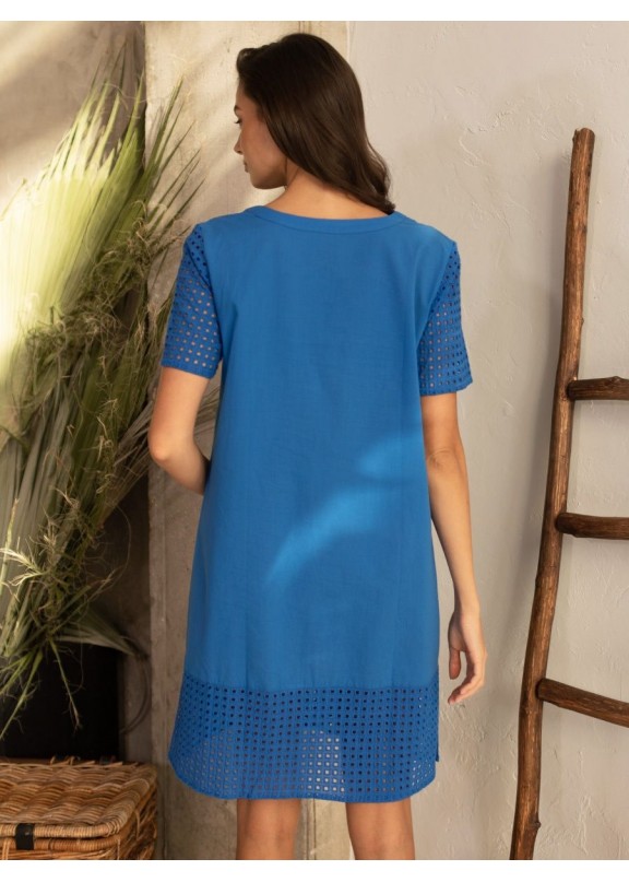 Платье-туника Mia-Amore длиной чуть выше колена, свободного силуэта и коротким рукавом. Изделие выполнено из гладкого хлопка и дополнено декоративными вставками из перфорированного хлопка, которые расположены по рукавам и низу туники. В пляжных и летних платьях-туниках больше всего ценятся натуральные ткани. Хлопок является гипоаллергенным материалом, который отлично впитывает влагу и также быстро выводит ее. Это полотно хорошо пропускает воздух, а значит дышит. В жаркий день именно натуральная вещь не вызывает дискомфорта и даже немного освежает. Здорово выглядит вышивка, которая украшает платье по рукавам и низу туники.