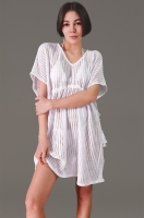 Изысканный силуэт этой короткой туники создан для тех, кто ценит комфорт и стиль. V-образный вырез горловины придает образу утонченность и грациозность, а длина чуть выше колена делает модель универсальной для любого случая. Особая фактура туники достигается благодаря использованию хлопкового сетчатого полотна, которое создает легкий и воздушный образ. Короткий рукав добавляет непринужденности, а кулиса на талии позволяет подчеркнуть достоинства фигуры.