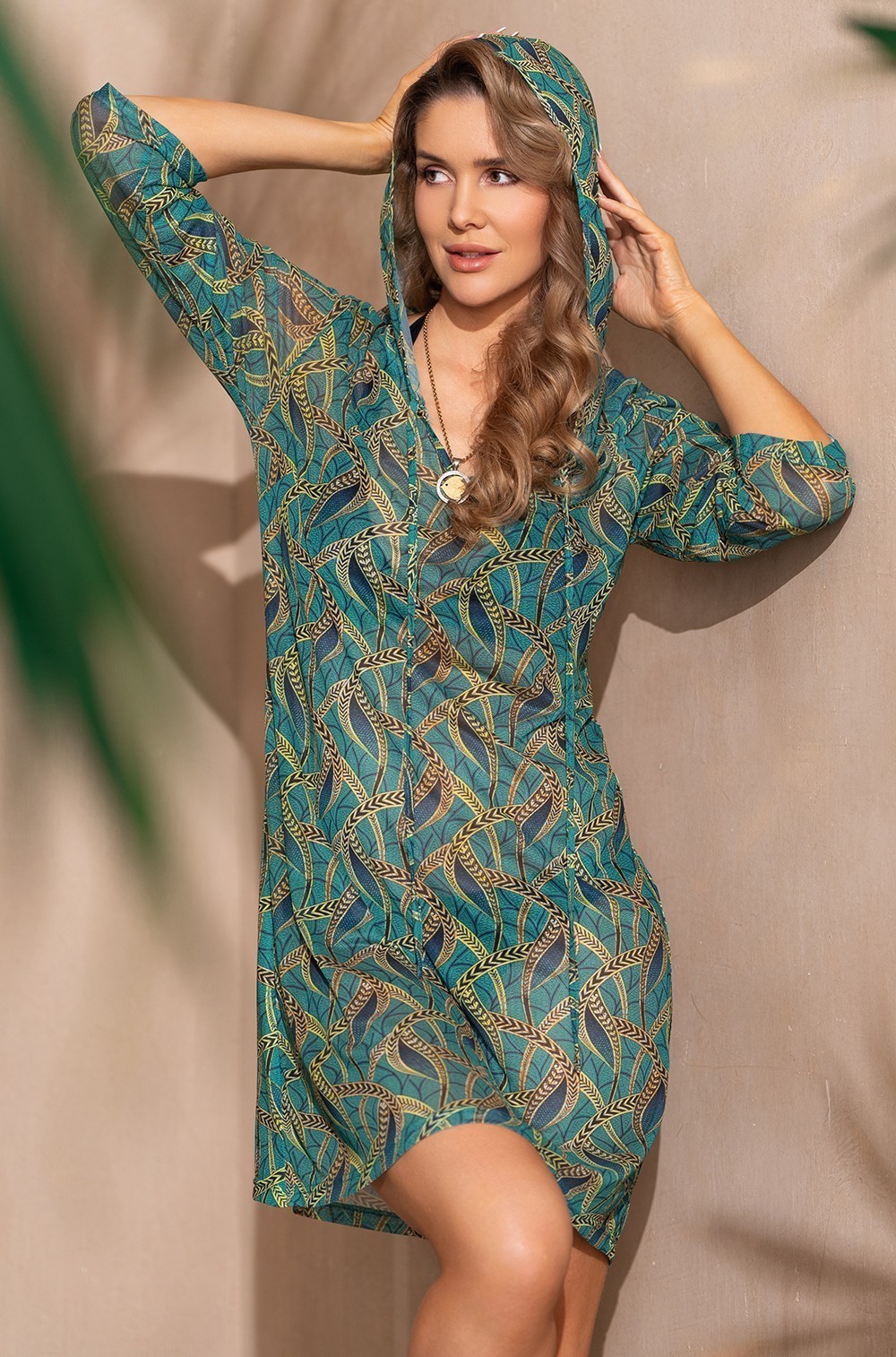 -Пляжная туника с капюшоном Mia‑Amore Луминель 2181 короткая с рукавом