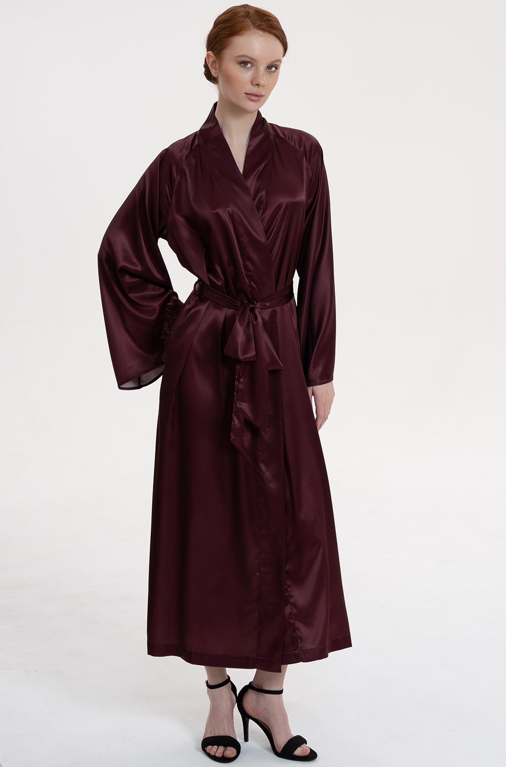 Халат длинный из смесового шёлка винный Лилироуз 4599 Mia-Amore