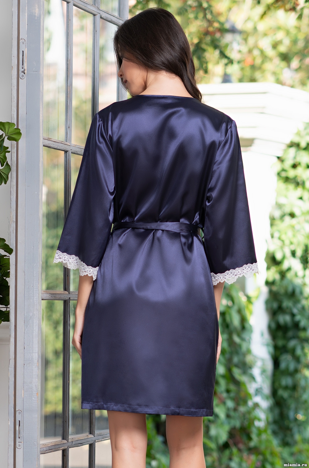Халат домашний атласный запашной Джулия JULIA 8733 синий Mia-Amore имеется в размерах XS. S/M. L/XL. 2XL/3XL.
