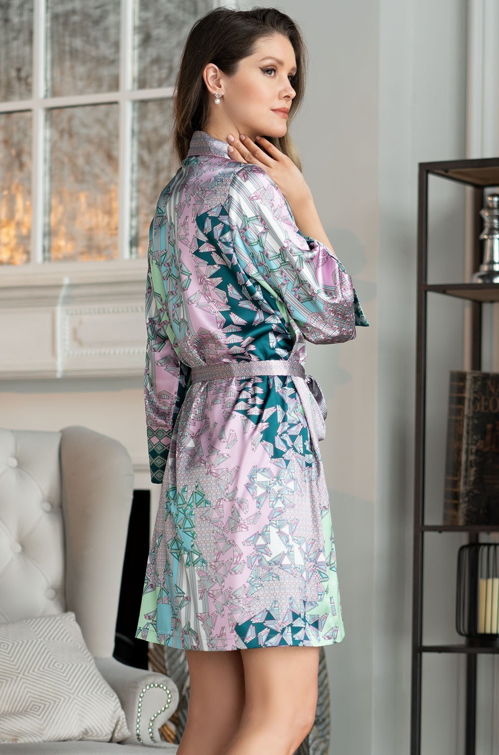 Атласный халат женский короткий запашной GEOMETRY 7003 Mia-Amore имеется в размерах XS.S/M. L/XL. XXL/3XL.