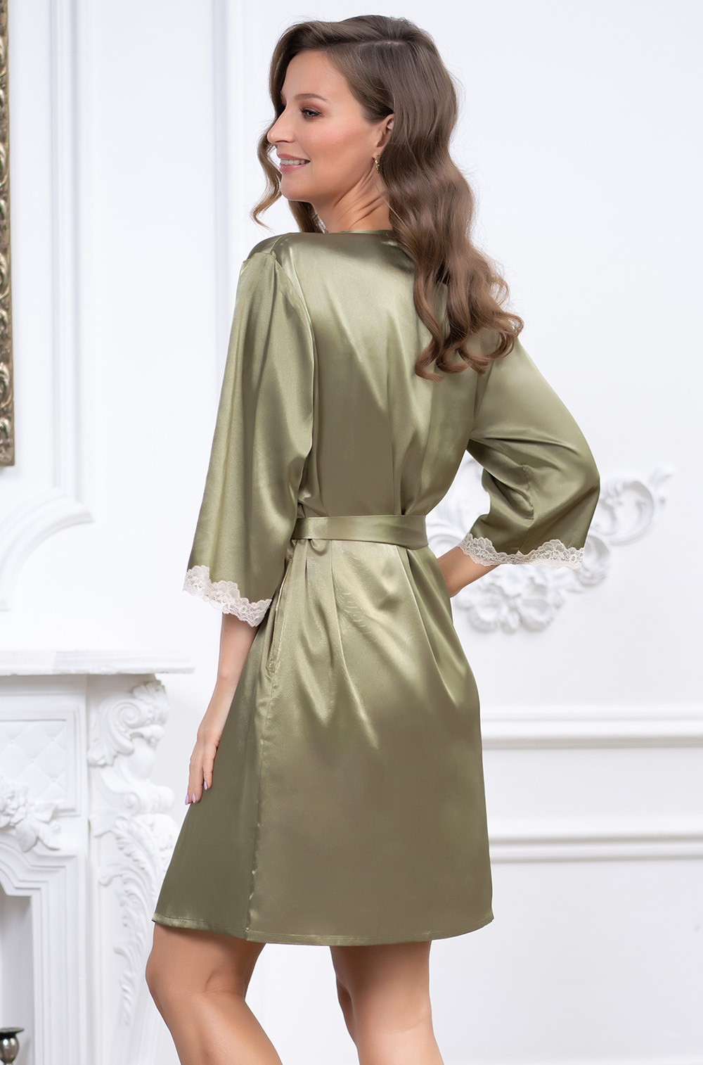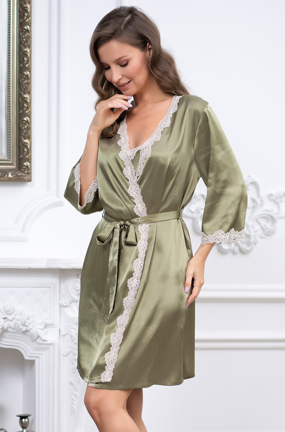 Халат домашний атласный запашной Джулия JULIA 8733 оливка Mia-Amore имеется в размерах XS. S/M. L/XL. 2XL/3XL.