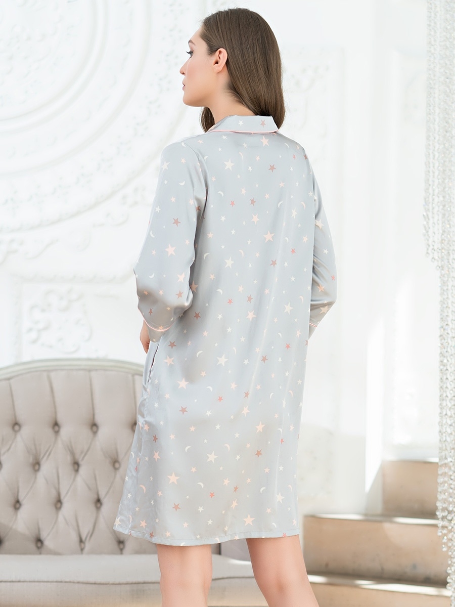 Атласная рубашка короткая JULIA Джулия 7077 серые звёзды Mia-Amore