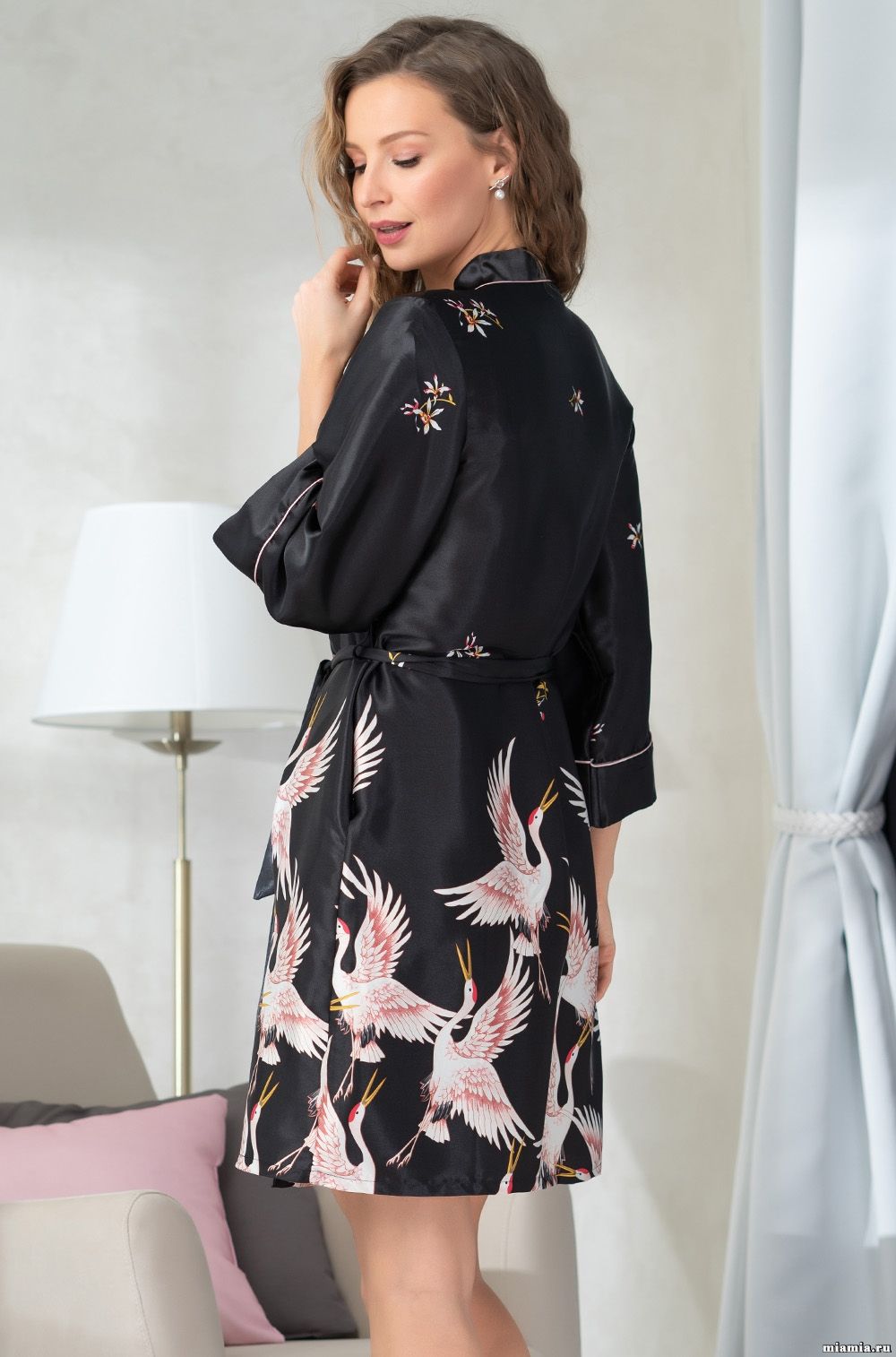 Интригующий халат чёрный с забавным принтом Стефания 8783 Mia-Amore: имеется в размерах XS. S/M. L/XL. 2XL/3XL.
