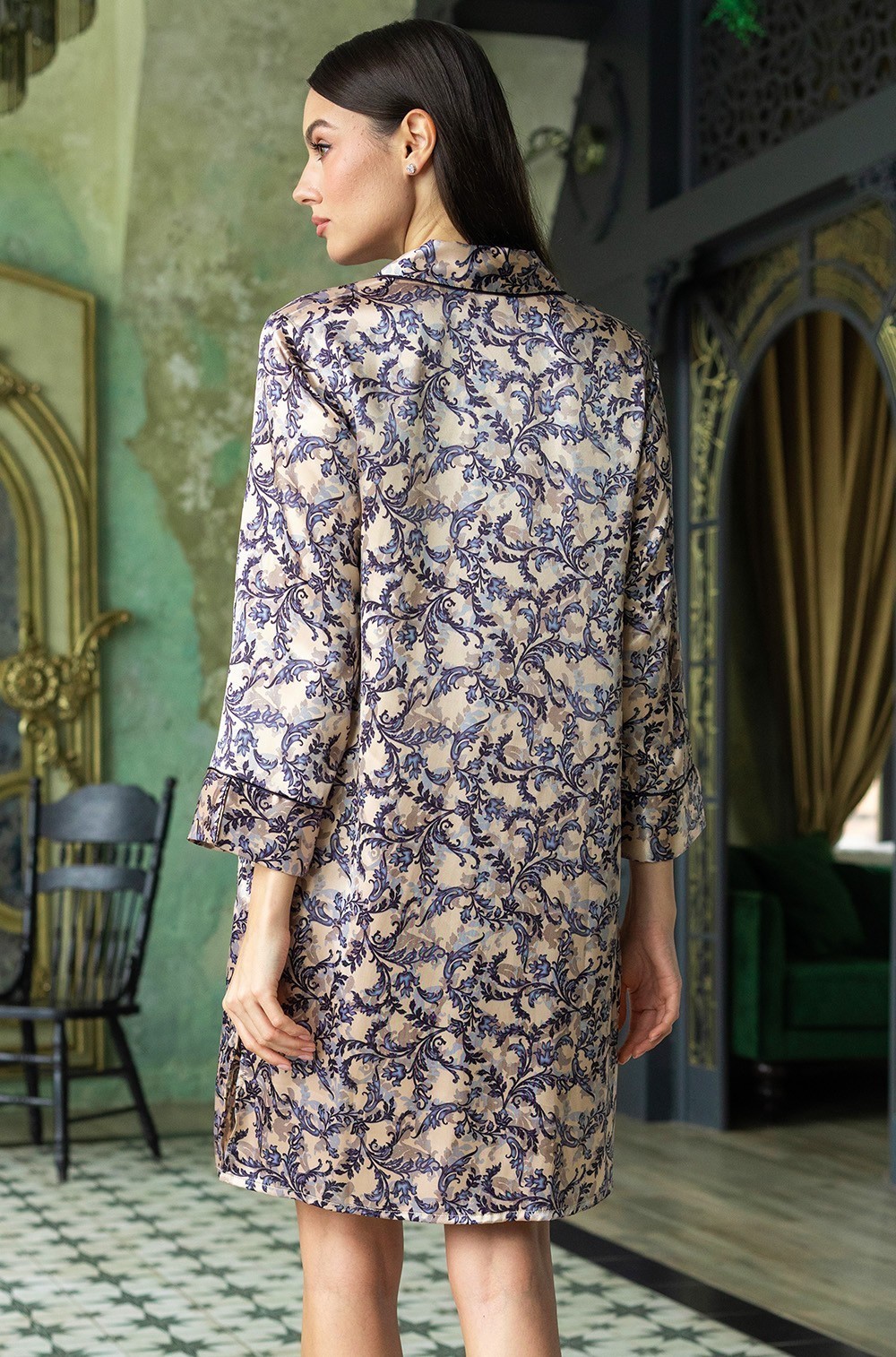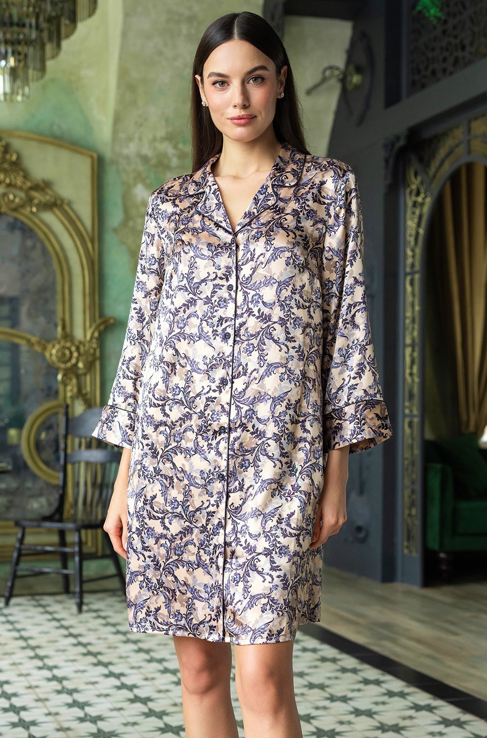 Carol 7387 от Mia-Amore — это стильная и удобная короткая рубашка с рукавом длиной ¾, которая станет отличным дополнением к вашему домашнему гардеробу. Эта рубашка выполнена из искусственного принтованного шелка, что придает ей легкость и изысканность. Контрастный кант в виде отделки добавляет утонченности и стиля. По бокам обработаны разрезы для свободы движения, что делает рубашку удобной и функциональной. В боковых швах изделия расположены карманы, что делает рубашку еще более практичной. Линию талии можно подчеркнуть за счет пояса, который идет в комплекте. Это позволяет регулировать посадку и создавать различные образы.