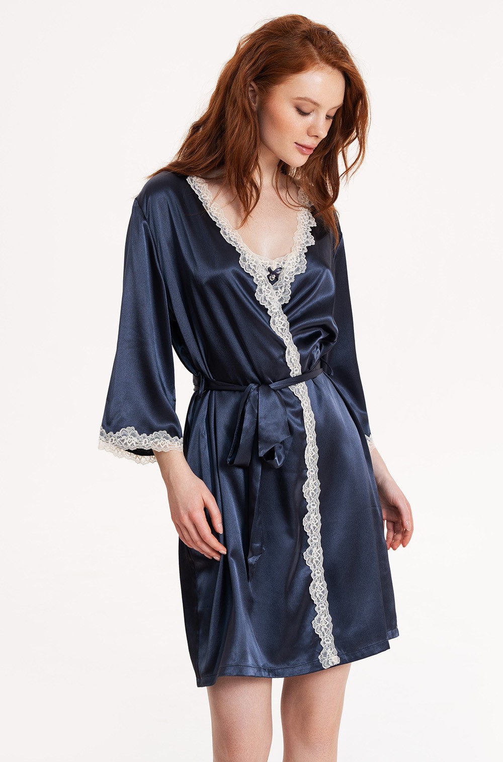 -Халат однотонный атласный Джулия Шарм 8733 черника Mia-Amore