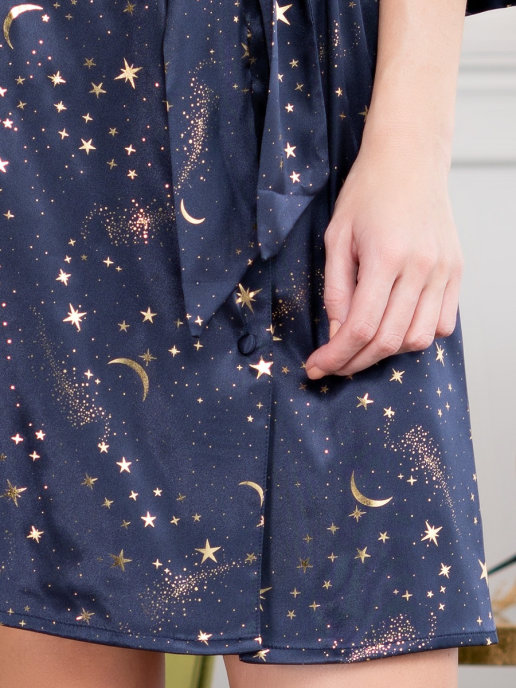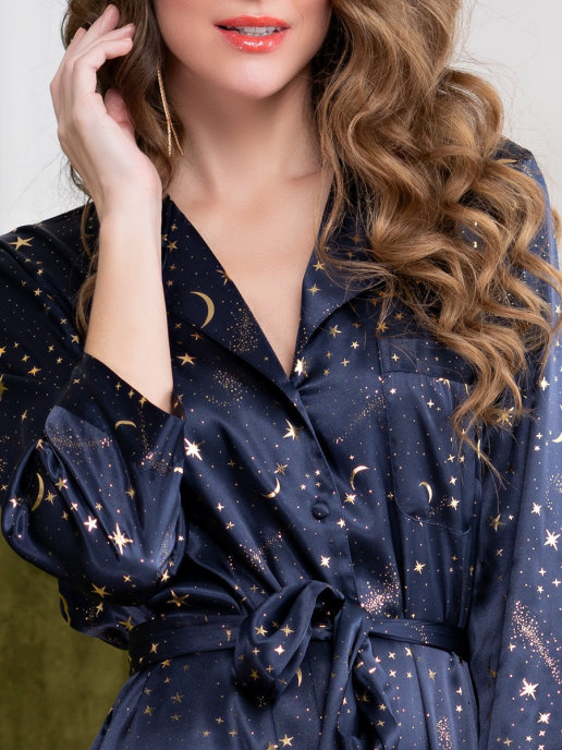 Халат женский рубашечного типа атласный на пуговицах Старлайт 8745 Mia-Amore.