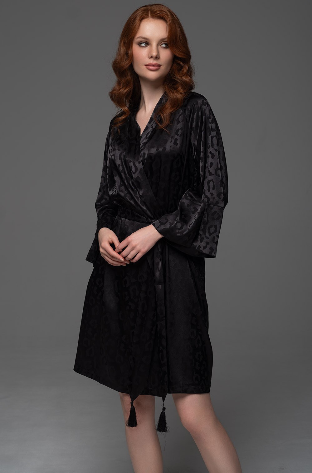 Короткий халат-кимоно чёрный 2233 Леона Mia-Amore