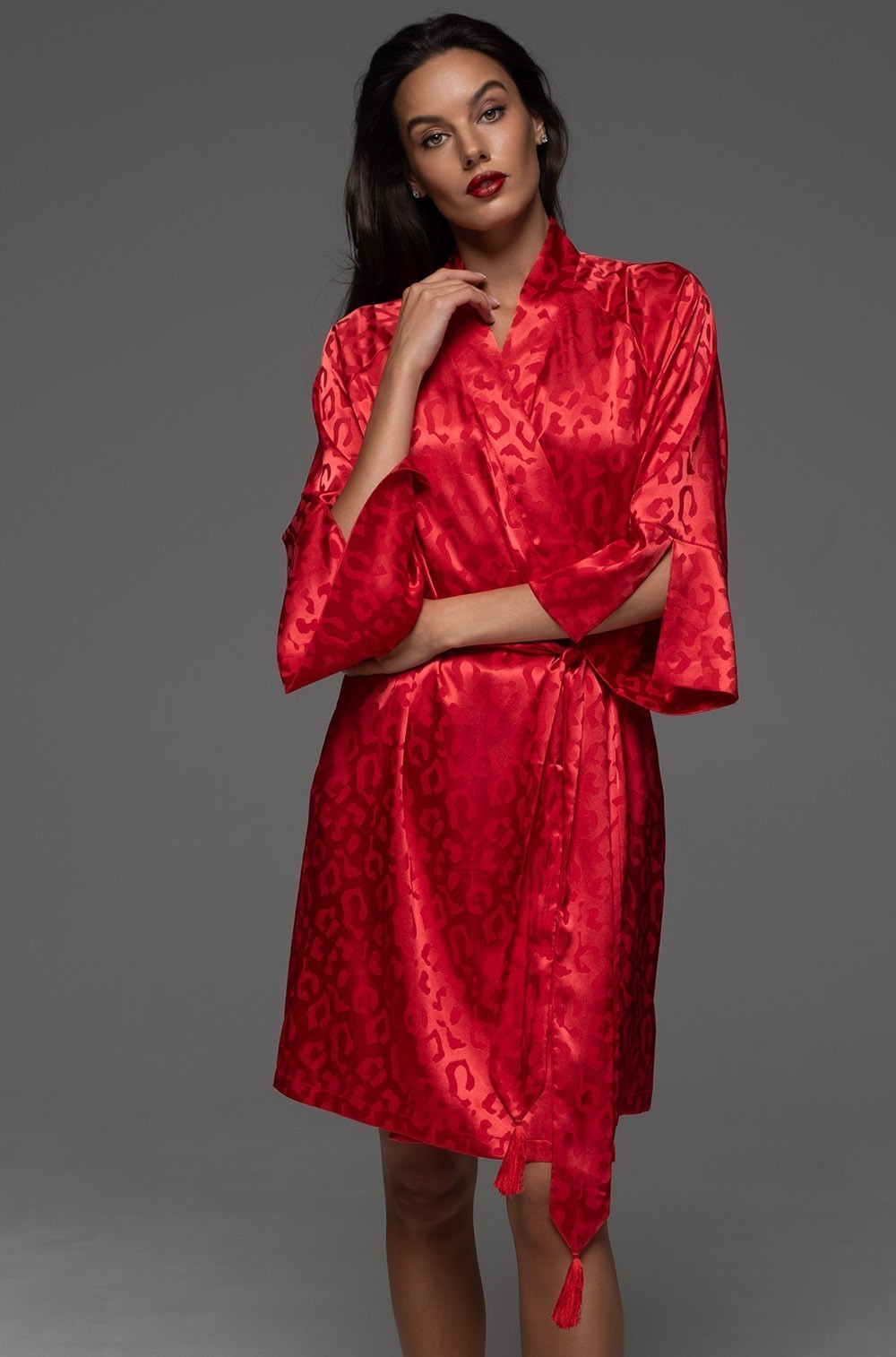 Красный короткий халат-кимоно 2233 Леона Mia-Amore