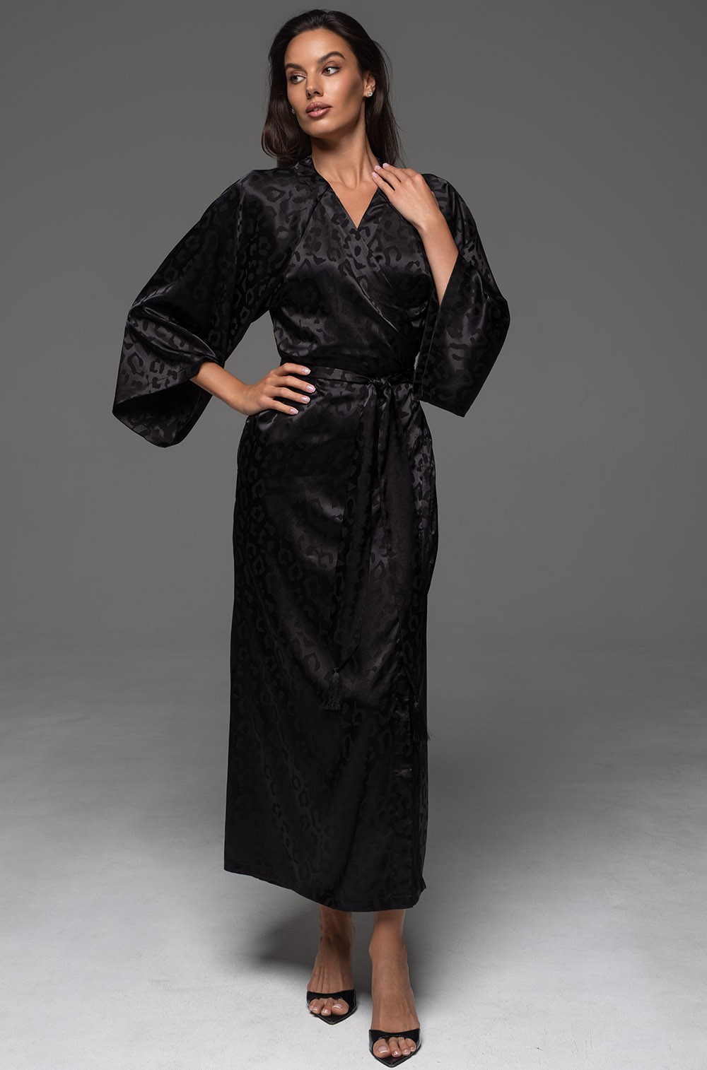 Чёрный длинный халат-кимоно 2239 Леона Mia-Amore