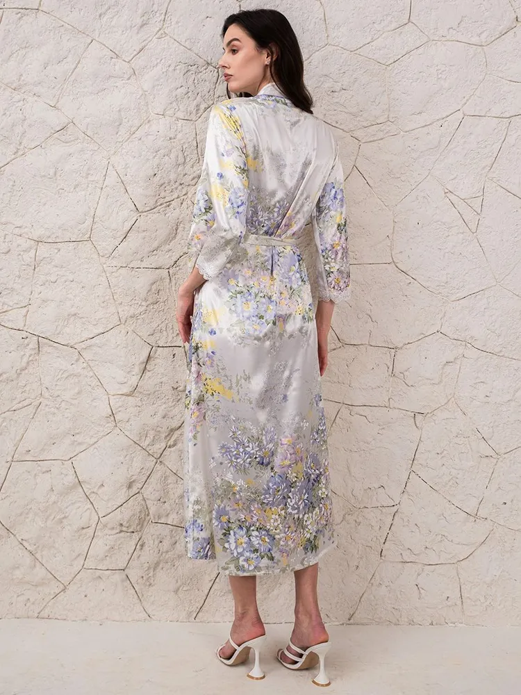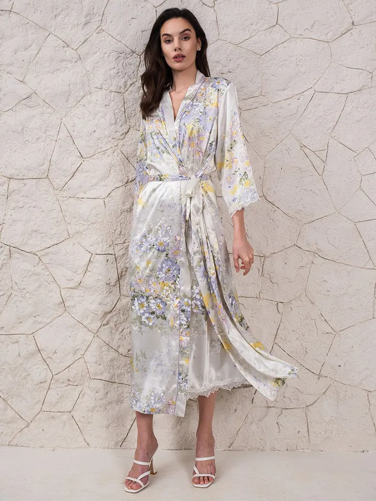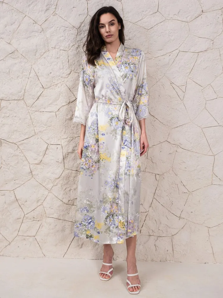 Шёлковый халат женский длиною макси Lilianna Лилианна 5999 Mia-Amore имеется в размерах: S/M. L/XL. XXL/3XL. 4/5XL.