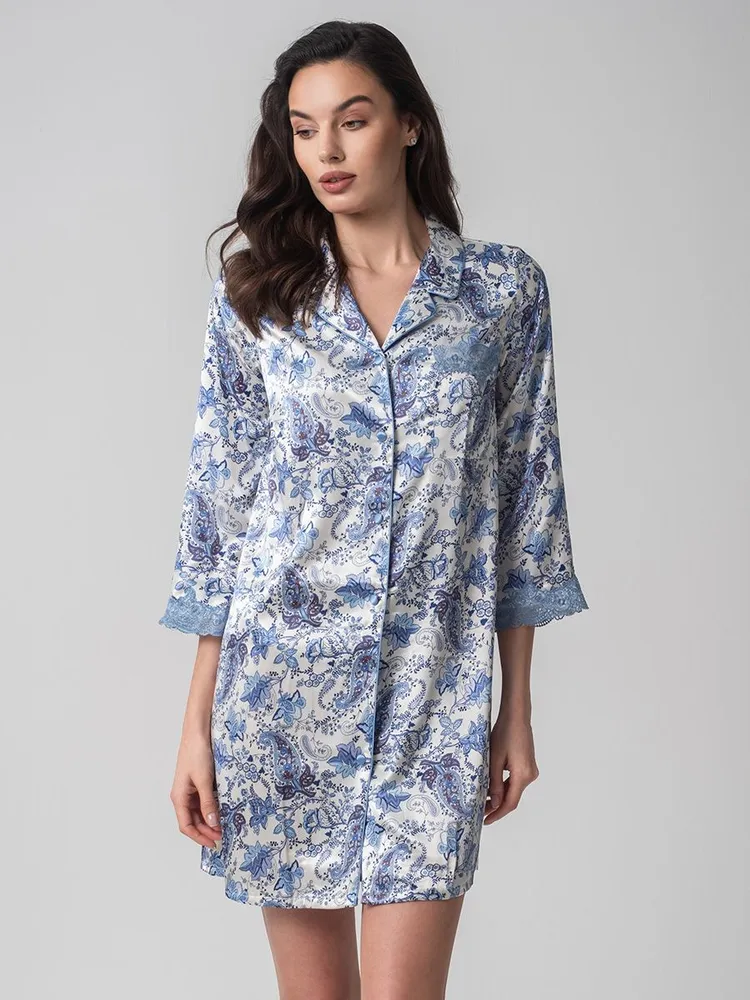 Тип Рубашка короткая Цвет Голубой Модель Халат с рукавом 3/4 Материал Смесовый шёлк