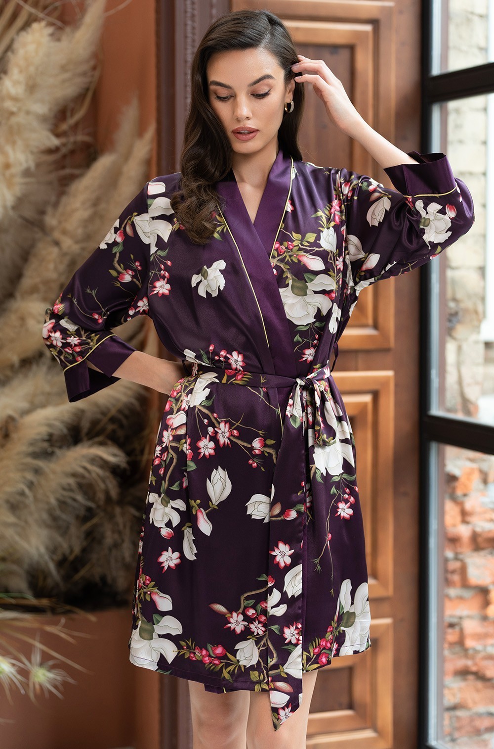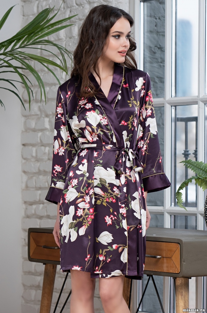Шёлковый халат короткий запашной Магнолия 3523 Mia-Amore имеется в размерах: S. M. L. XL. XXL. 3XL.