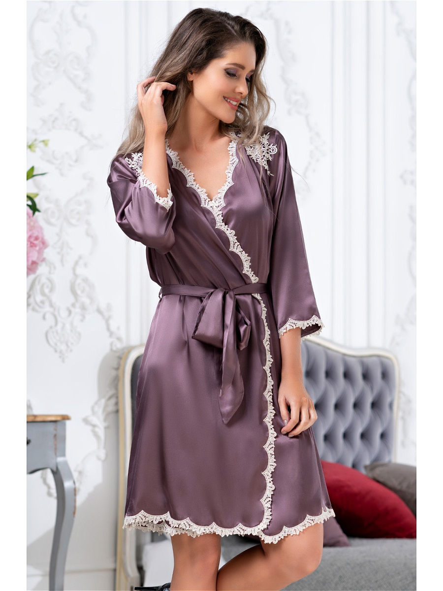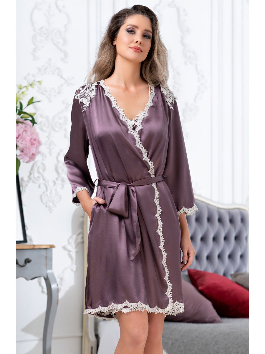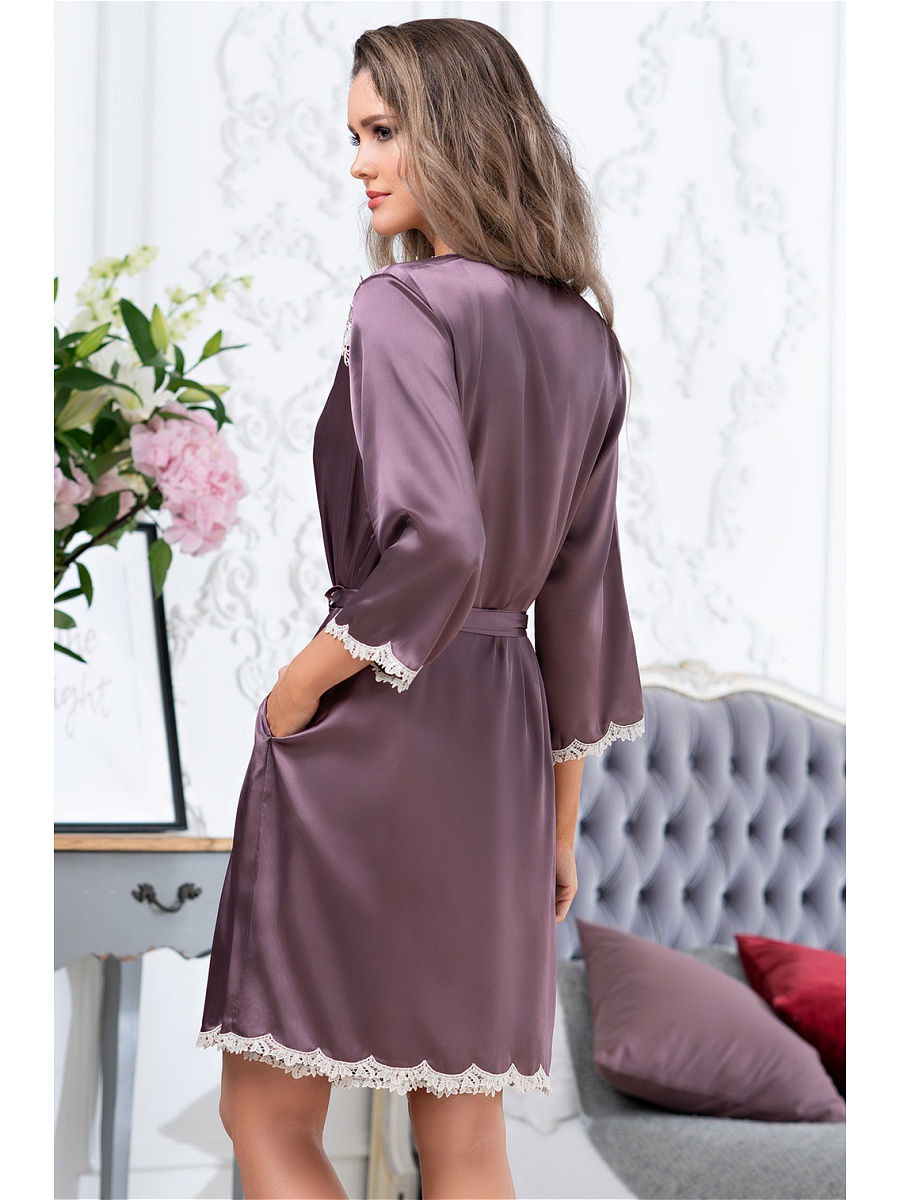 Тип Халат короткий Цвет Фиолетовый Модель Халат с рукавом 3/4 Материал Смесовый шёлк