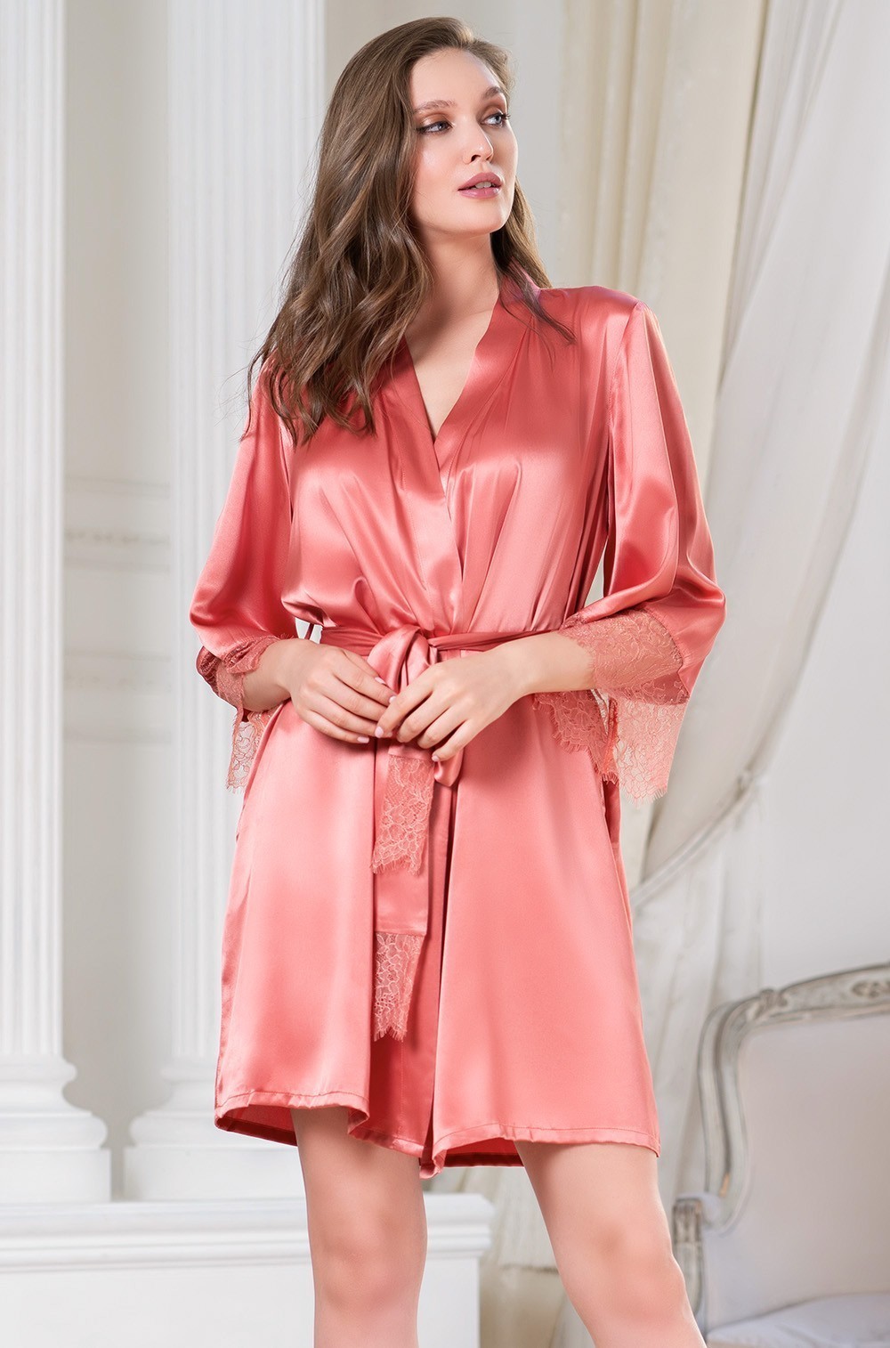 Тип Халат короткий Цвет Розовый Модель Халат с рукавом 3/4 Материал Смесовый шёлк