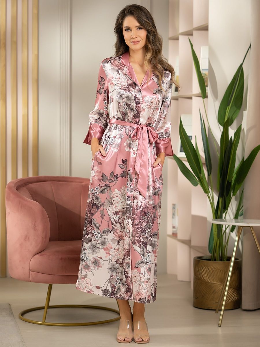 Тип Халат длинный Цвет Розовый Модель Халат с длинным рукавом Материал Смесовый шёлк -