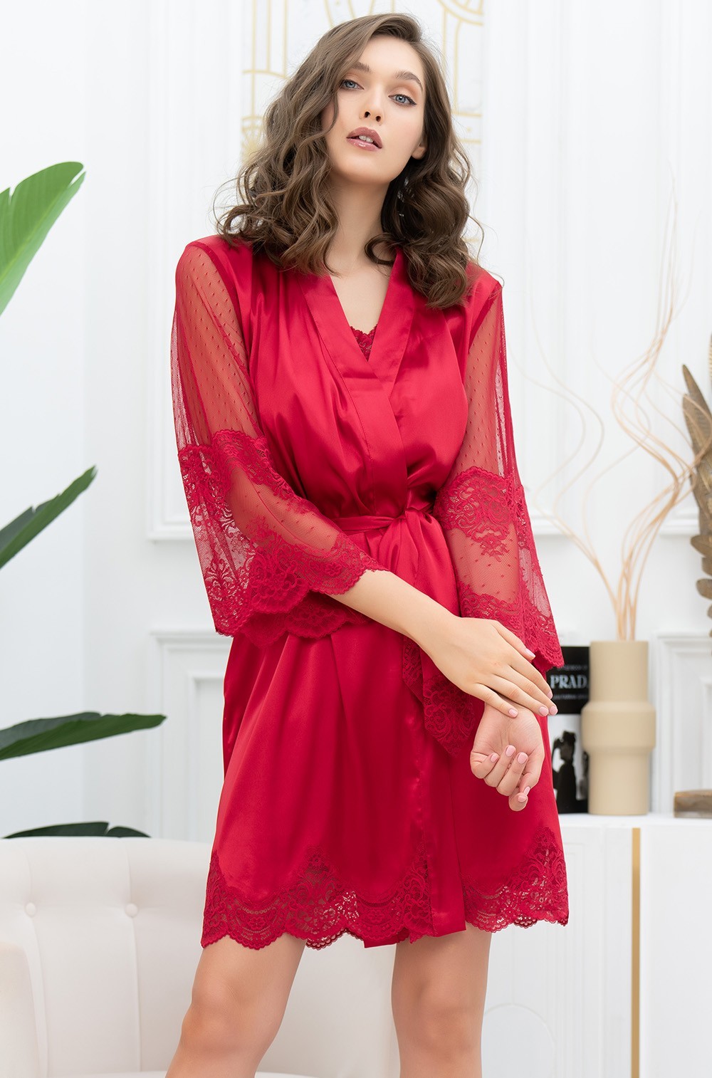 Тип Халат короткий Цвет Красный Модель Халат с длинным рукавом Материал Смесовый шёлк -