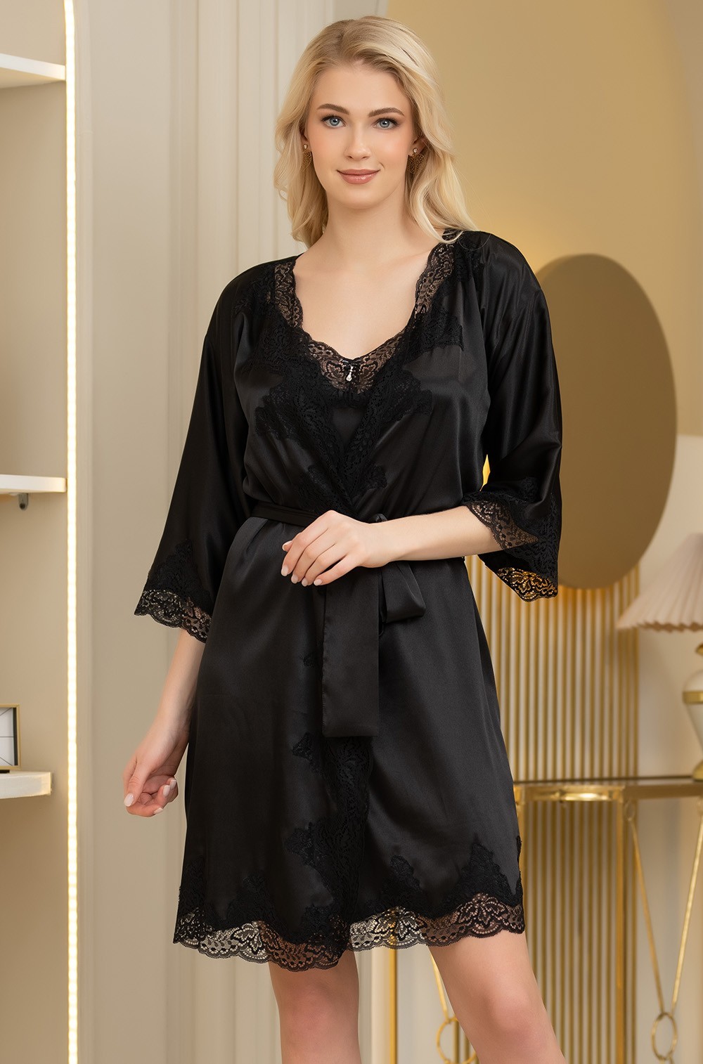 Тип Халат короткий Цвет Черный Модель Халат с рукавом 3/4 Материал Смесовый шёлк -